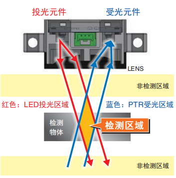 歐姆龍新推出傳感器B5W(原理如圖)是一款不易受顏色和材質(zhì)影響的限定反射型。 鏡面、黑色、透明物體也都會檢測出來限定位傳感器,檢測范圍廣,因此耐物體位置偏移強不易受外部干擾影響。接受來自檢測物體的反射光以檢測物體有無,擁有限定了投光光束和受光區(qū)域的光學系統(tǒng)。支持DC24V的設備內(nèi)置用,憑借由4種超環(huán)面透鏡組成的歐姆龍自行設計的結(jié)構,只需微弱的光即可實現(xiàn)穩(wěn)定檢測。