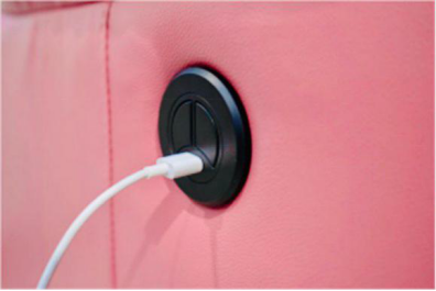 而這款小沙發(fā)旁邊設(shè)置了開關(guān)調(diào)節(jié)角度和USB充電接口,讓使用者在最方便的位置就能操控沙發(fā)的角度。