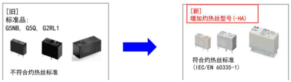 而我們的歐姆龍繼電器G5NB/G5Q/G2RL系列為此推出灼熱絲帶-HA型號,兩者的區(qū)別就在于外殼和基座的塑料材質是否為阻燃材料。