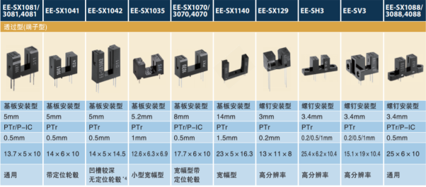 歐姆龍型號EE-SX1088,3088對射式光電開關(guān)可應(yīng)用于:復(fù)印機、傳真機、開關(guān)掃描儀、打印機、門禁機、出卡機、車輛檢測器、跑步機、機器控制開關(guān)、投幣機、自動感應(yīng)器等上面。