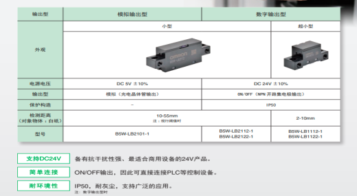 B5W-LB系列是限定反射型傳感器(如圖三),搭載了由4種超環(huán)面透鏡組成的歐姆龍自行設(shè)計的光學(xué)鏡頭。只需微弱的反射光即可實現(xiàn)穩(wěn)定檢測,不易受檢測物體的顏色和表面狀態(tài)影響,可在廣泛檢測區(qū)域內(nèi)檢測黑紙和透明玻璃等。