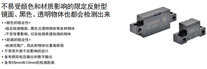 對于玻璃機(jī)械來說,歐姆龍檢測有無的光電傳感器B5W-LB2112-1擁有著絕對優(yōu)勢。歐姆龍傳感器抗陽光干擾強(qiáng),可穩(wěn)定檢測鏡面、黑色、透明物體,接受來自檢測物體的反射光以檢測物體有無,擁有限定了投光光束和受光區(qū)域的光學(xué)系統(tǒng),僅可檢測相距傳感器一定距離(投光光束與受光區(qū)域重合的范圍)的檢測物體。