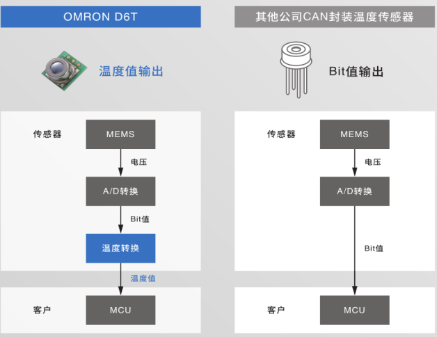 MEMS非接觸溫度傳感器采用歐姆龍自行設(shè)計的MEMS技術(shù),將熱電堆元件和ASIC封裝在一起,實現(xiàn)超小型化。