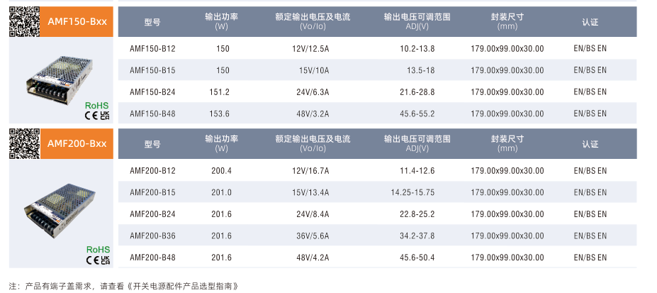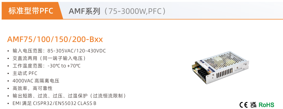開關(guān)電源標(biāo)準(zhǔn)型AMF系列帶PFC(75-3000W)
