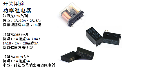 機(jī)床工作的過(guò)程中,通常需要通過(guò)電源、線圈、馬達(dá)、通電、通用外部輸出來(lái)進(jìn)行運(yùn)動(dòng)的傳輸,此時(shí)繼電器主要起開(kāi)關(guān)作用,并且對(duì)繼電器觸點(diǎn)的開(kāi)關(guān)容量、觸點(diǎn)可靠性、壽命要求比較高??梢赃x用以下歐姆龍功率繼電器: