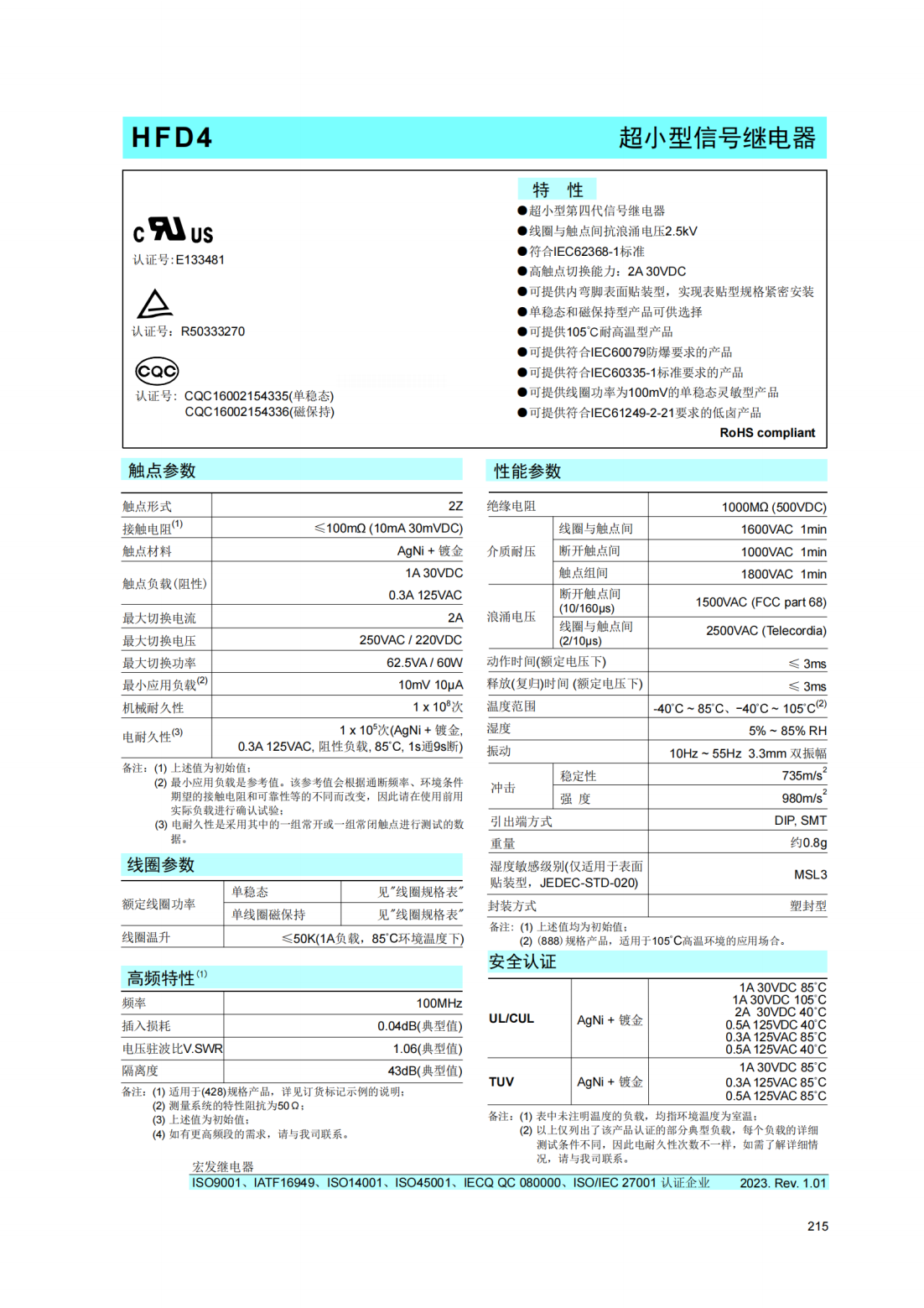 HFD23-012-1ZS4宏發(fā)繼電器