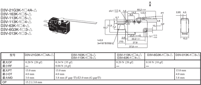 | 短擺桿型 | 內(nèi)部安裝 | 1.23N {125gf} | D3V-21G1-1□4A-△ | D3V-21G1-2□4A-△ | D3V-21G1-3□4A-△ |