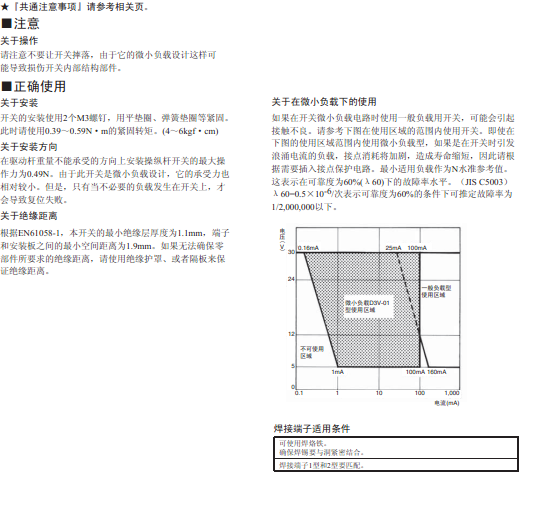 | 注:1.次數(shù)值為標(biāo)準(zhǔn)規(guī)格的節(jié)點(diǎn)間隔1mm(F ?Gap)的電流常熟,節(jié)點(diǎn)間隔為0.5mm(G Gap)的場(chǎng)合,定格多少有所不同,請(qǐng)充分注意。 |