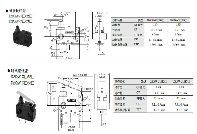 D2QW系列 密封型極小型基本開關(guān) 高可靠性和耐環(huán)境性兼?zhèn)涞拈L行程密封型開關(guān)