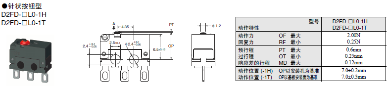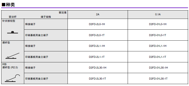 D2FD-2 超級小型基本開關(guān) 兼具防塵功能的極超小型基本開關(guān) 利用橡膠封裝的密封結(jié)構(gòu)實現(xiàn)防塵 (IEC IP6X)??稍谟谢覊m、紙粉的環(huán)境下使用。 可動片為1片彈簧構(gòu)造,支持AC125V 2A開關(guān),更有微小負(fù)載型可供選擇。 還備有焊接、印刷基板用端子。