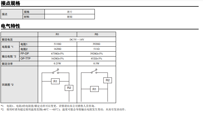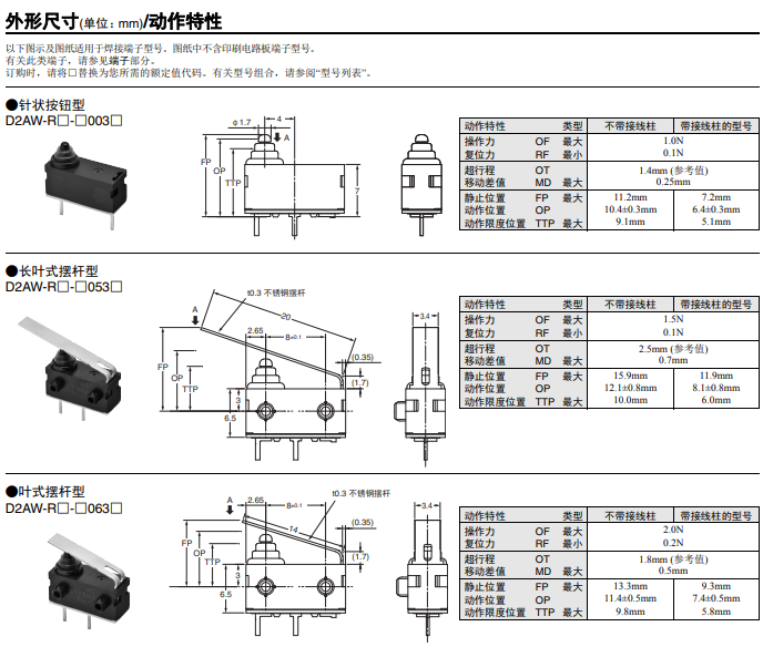 內(nèi)置電阻,可檢測4種狀態(tài) 長行程密封型開關(guān) 開關(guān) ON/OFF/短路/斷線 輸出4種狀態(tài) 即使無擺桿也便于使用的長行程規(guī)格 (OT參考值:1.4mm) 憑借滑動接點(diǎn)結(jié)構(gòu)實現(xiàn)高接觸可靠性和安靜的動作音