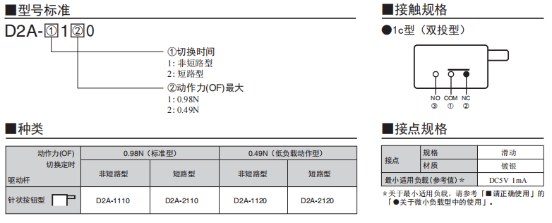 D2A 小型檢測歐姆龍開關