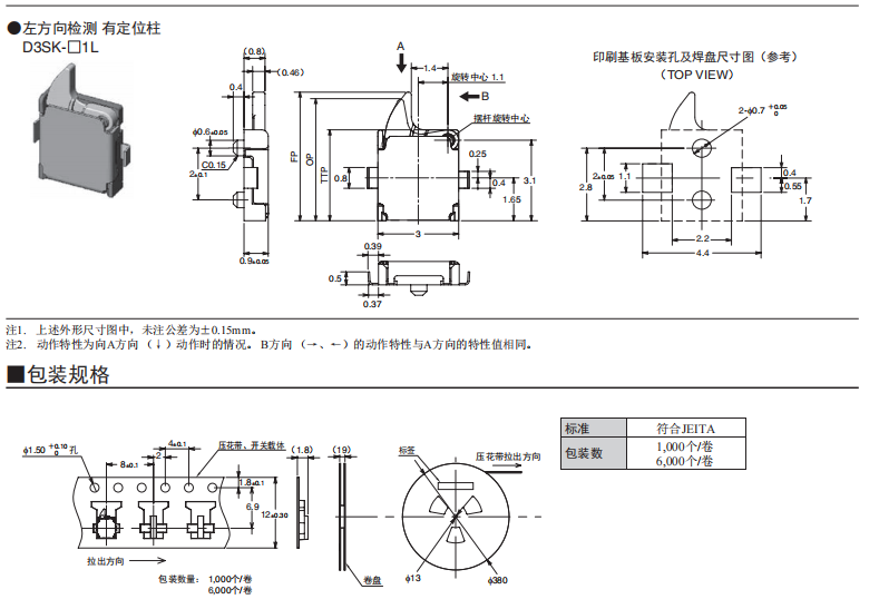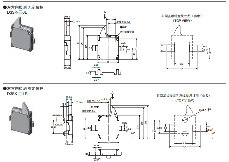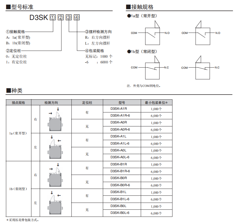 「社內(nèi)較小級」可實(shí)現(xiàn)高精度動作的檢測開關(guān) (寬3.0mm×長3.5mm×厚0.9mm) 小型及薄型,為機(jī)器的小型化、薄型化作貢獻(xiàn)。 特定的接點(diǎn)機(jī)構(gòu),實(shí)現(xiàn)了高精度的動作位置及高可靠性的接觸。 長行程提高了使用的便捷性。 接觸規(guī)格(1a、1b)及多種擺桿,可適合范圍寬廣的各種用途。