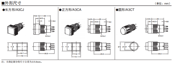 A3C系列按鈕歐姆龍開關(guān)(帶燈、不帶燈)(圓型φ12)