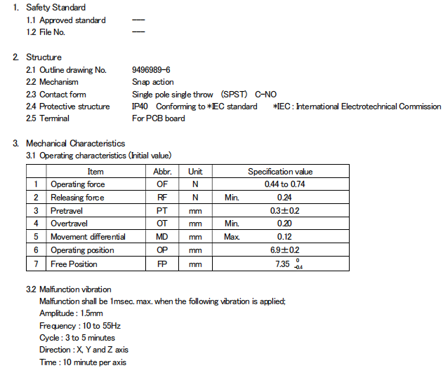 印刷基板用端子還備有獨立端子、直角端子。鼠標開關(guān)的型號有: