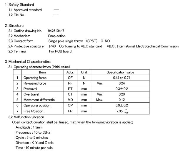 印刷基板用端子還備有獨(dú)立端子、直角端子。鼠標(biāo)開關(guān)的型號(hào)有:
