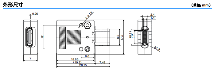 I/O 接口為 USB Type-C 接口的 電子設備檢查用插座 ? 裝備 USB Type-C 3.1 標準接口 (JAE制造 型號:DX07B024JJ3LR1600) ? 可以安裝至設備等的安裝孔 (?1.8)