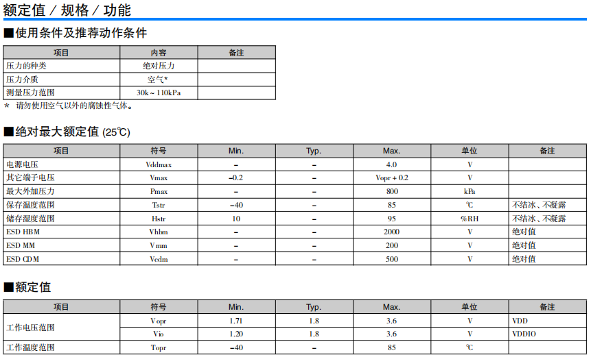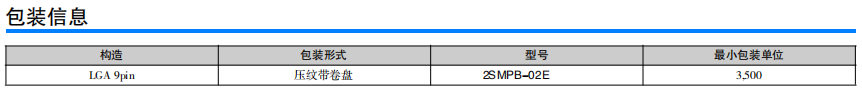 高精度·低消耗電流的小型MEMS絕對壓力傳感器 高精度地測量氣壓 內(nèi)置低干擾的24bit ADC 基于I2C/SPI 接口的數(shù)字控制/輸出 在自動睡眠模式下實現(xiàn)低消耗電流 單獨的補償系數(shù)保存在OTP*中 (* One Time Programmable - ROM)