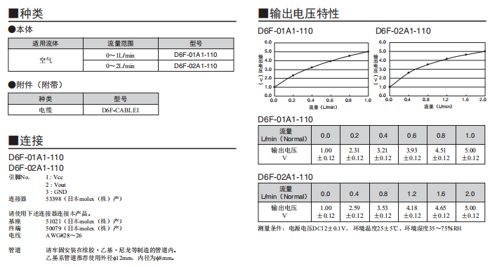 D6F-N2/-L2 高精度流量歐姆龍傳感器