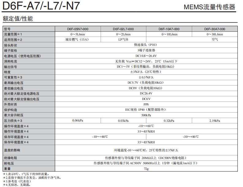 D6F-A7/-N7/-L7燃?xì)饬髁繗W姆龍傳感器